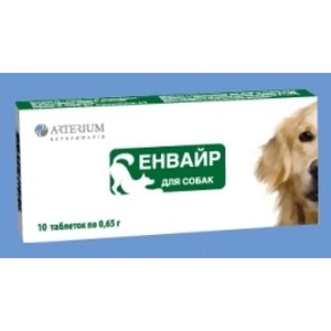 Энвайр - комплексный противоглистный препарат для щенков и взрослых собак. Эффективен как против круглых гельминтов так и против ленточных. 1 таблетка на 10 кг веса